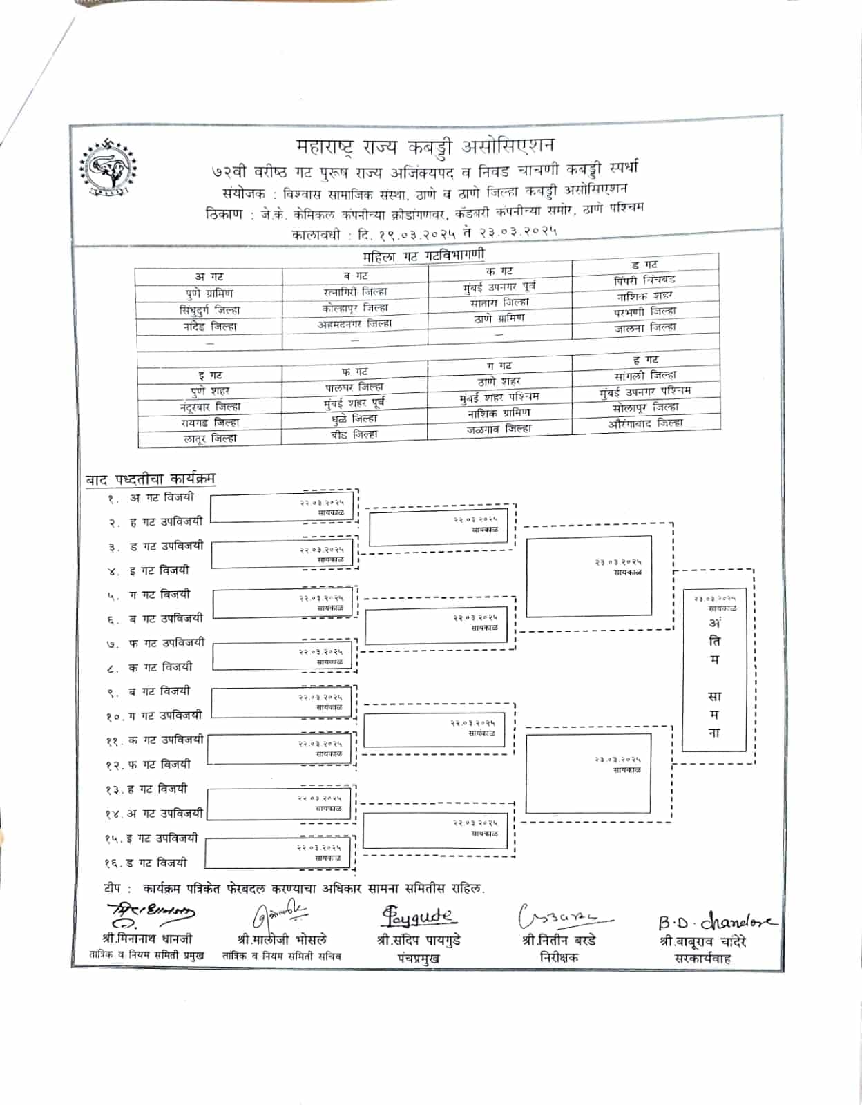 FULL Schedule Maharashtra State Kabaddi Championship 2025